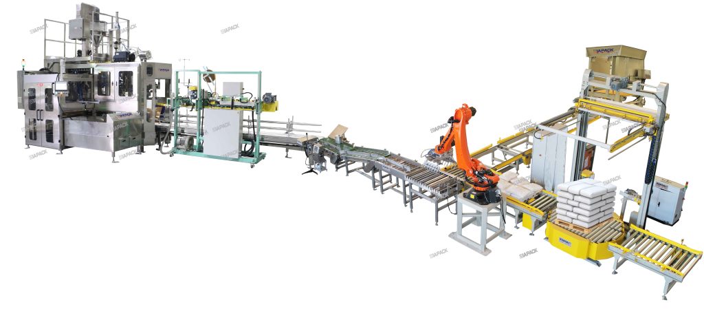 Balení 10-25 kg, s kapacitou 1000 sáčků za hodinu (podle různých pytlů, surovin)