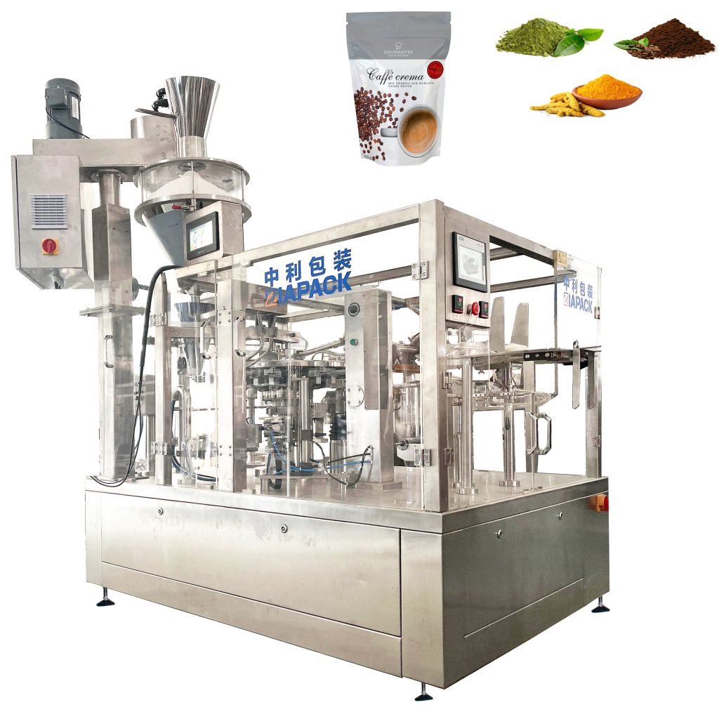 Balicí stroj s rotačním vakem s různým dávkováním (např. vícenásobná váha, plnič šneku, tekuté plnivo atd.), může být vhodný pro automatické balení granulí, prášku, kapaliny, pasty atd. Různé druhy rpoduct s premade stand-up vakem, plochým pouzdrem a již brzy.