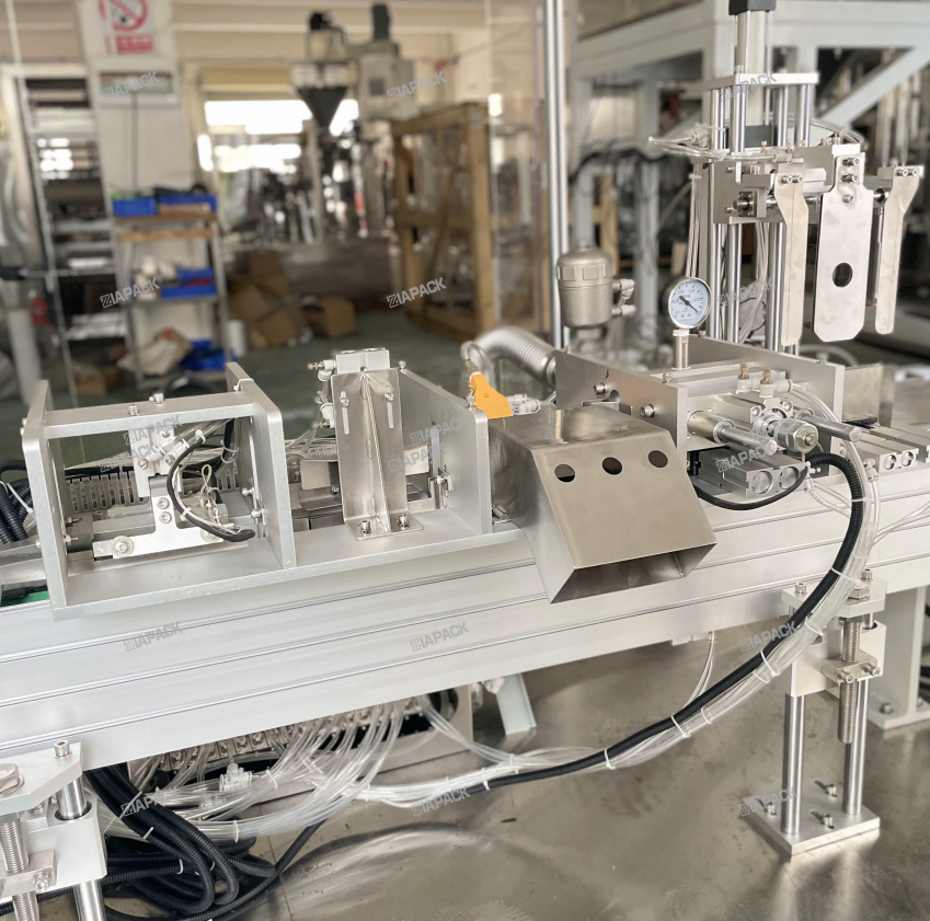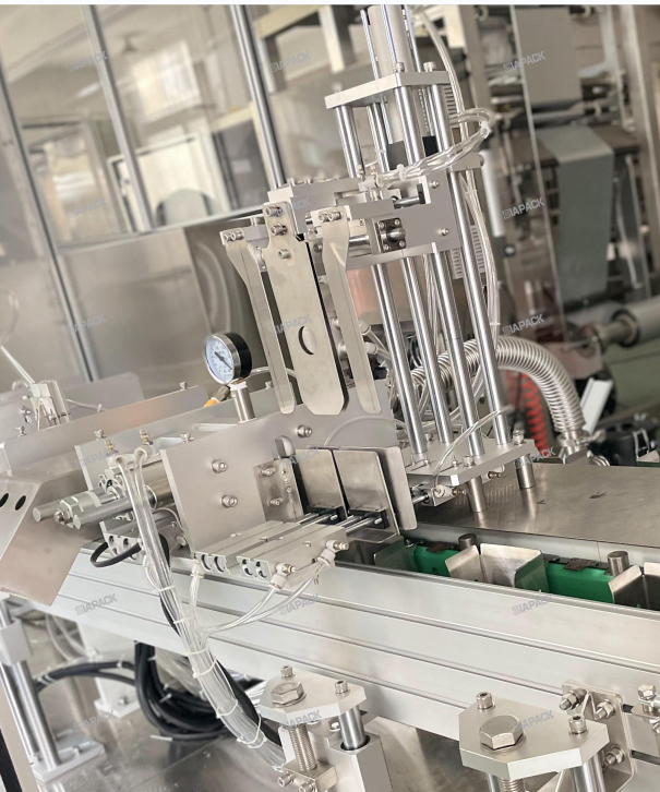 Tento stroj má speciální konstrukci pro výrobu klínového sáčku s horním značením. Po plném sáčku s upuštěním produktu na tento stroj. Tento stroj unese sáček, projde jednorázovým přeložením sáčku a poté nalepí štítek. Rám stroje vyrobený společností SUS304 .PLC a dotyková obrazovka přijata značkou Siemens .A pneumatické části převezmou značku SMC .Hlavní elektrické komponenty převezmou značku Omron a Schneider.Tento stroj pracuje s automatickým balicím strojem, aby dosáhl hotového označení sáčku .Tento stroj může automaticky dosáhnout funkce štítku se oddělí, Odeslání štítku. Detektor štítku a lisování štítku.