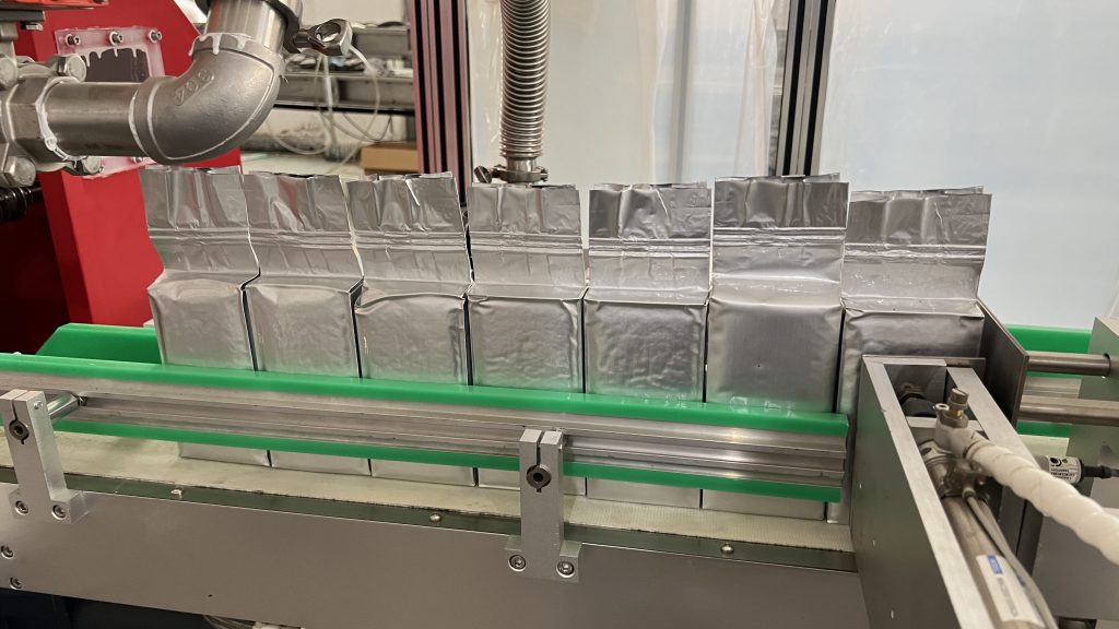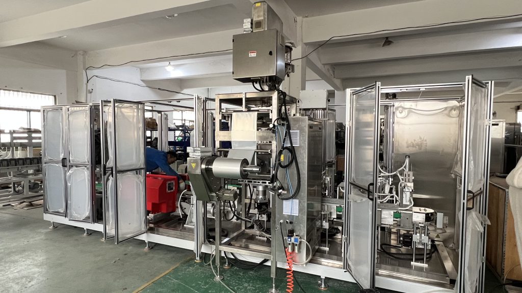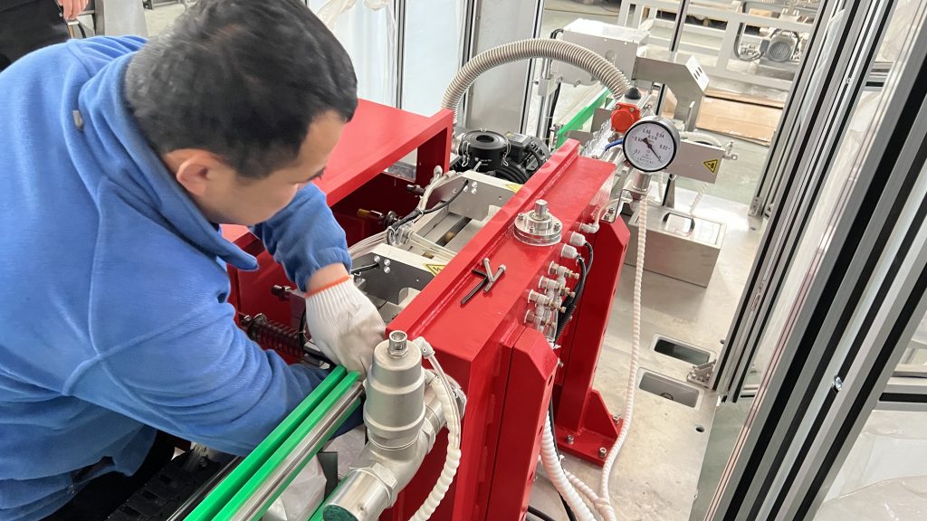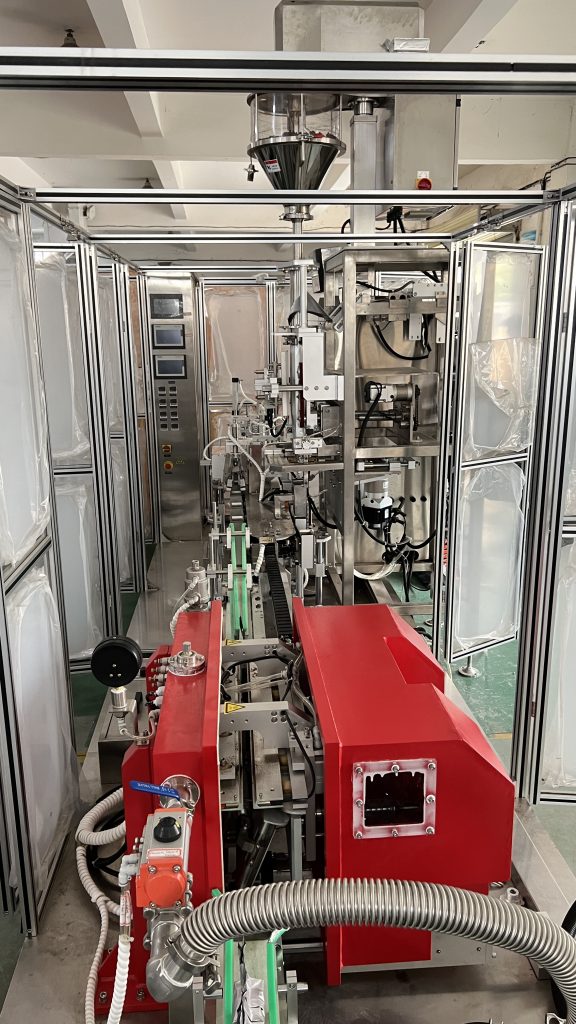 Náš klient z Íránu si objednal jednu sadu automatických cihelných vakuových sáčků tvořících plnicí balicí stroj na 250 gramů kávového prášku. A podle požadavku klienta jsme natřeli vakuovou komoru na červenou barvu jako varování.